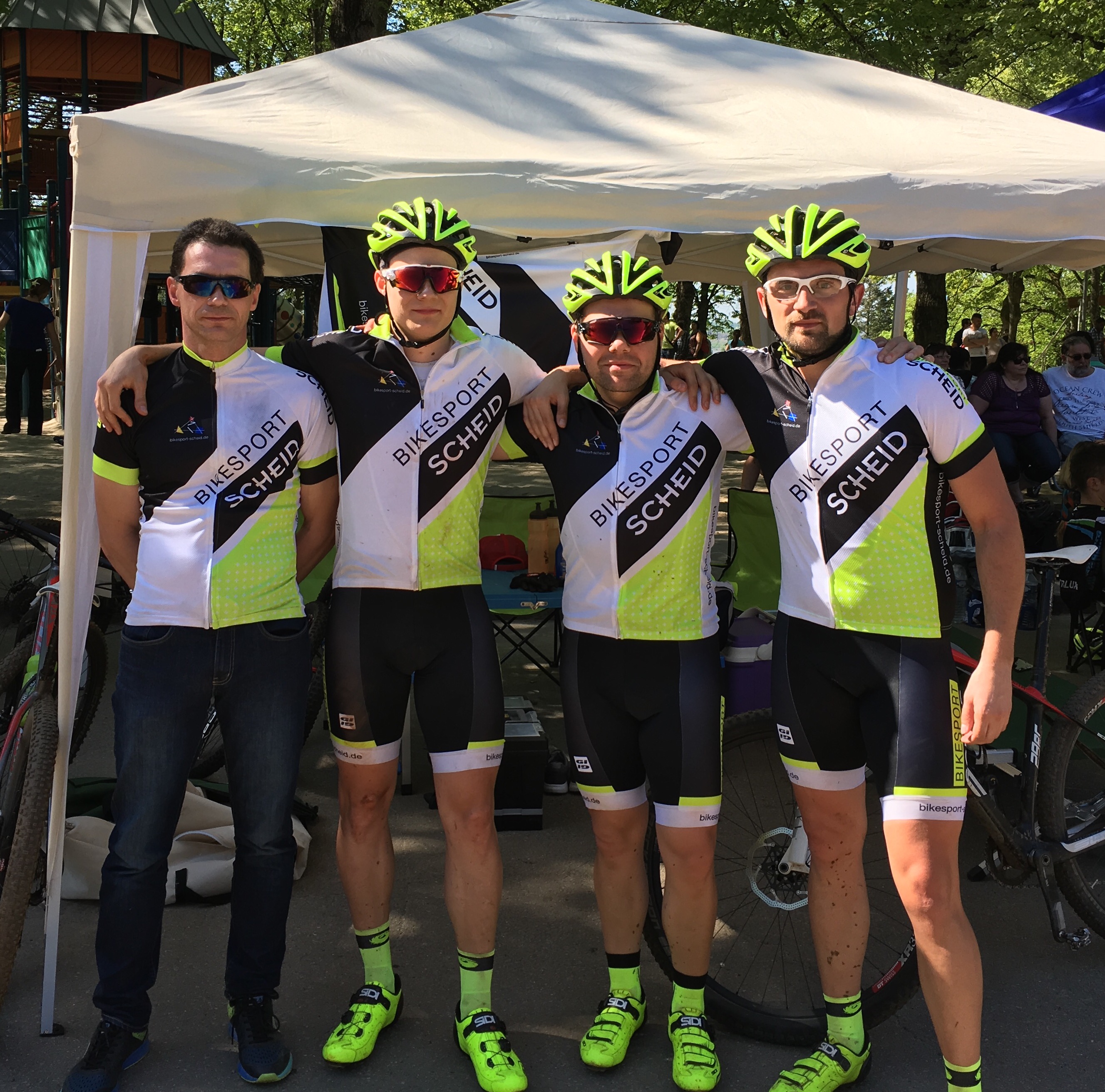 Am Sonntag starteten Tino Kipping, Thilo Seimetz und Frederik Veith in die MTB-Saison 2016! Auch in diesem Jahr werden die drei unter dem Teamnamen Bikesport Scheid MTB Racing Team in der 6h Rennserie an den Start gehen. Auftakt war das 6 Stunden Rennen im luxemburgischenEsch sur Alzette, wo eine sehr schnelle und flüssige Strecke auf die Fahrer wartete. Nach dem Le Mans – Start konnten sie sich in der Startrunde bereits unter den ersten 10 einreihen und somit für eine gute Ausgangsposition für die nächsten 6 Stunden sorgen. Sehr schnell sortierte sich das Feld und mit konstanten Rundenzeiten konnten die Jungs im Laufe des Rennens noch Plätze gut machen und sicherten sich am Ende einen sehr guten 7. Platz in der Herren-Team Kategorie.