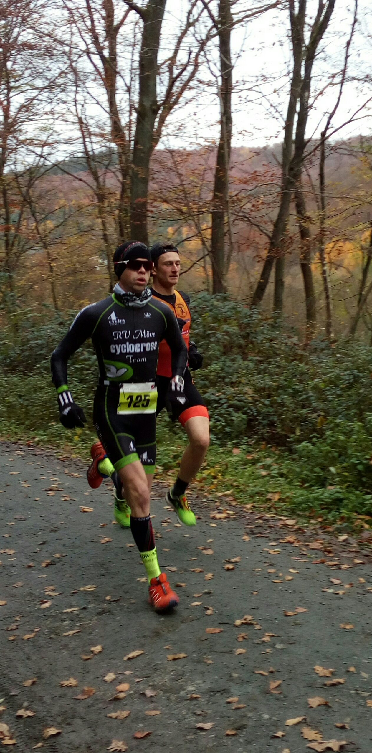 Am 18. November startete Benny Irsch im hessischen Lorsbach beim 18. Crossduathlon. Bereits auf den ersten 5 km über die wellige Waldstrecke positionierte sich Benny im Topfeld uns wechselte als 4. auf die anspruchsvolle Radstrecke. Der 21 km lange Rundkurs mit 500 Höhenmetern verlief überwiegend über befestigte Waldwege mit kurzen Trail Passagen. Benny konnte bereit auf den ersten Kilometern auf Platz zwei vorfahren als er bei Kilometer 8 von einem „Plattfuss“ erwischt wurde. 12 km quälte er sich mit einem platten Reifen in die Wechselzone und verlor Position um Position . Als 31. wechselte er wieder auf die abschließende 5 km lange Laufstrecke. Mit viel Wut im Bauch startete er eine furiose Aufholjagt und lief vom 31. auf Platz 9. vor. In seiner Altersklasse AK30 erreichte er den 3. Platz.